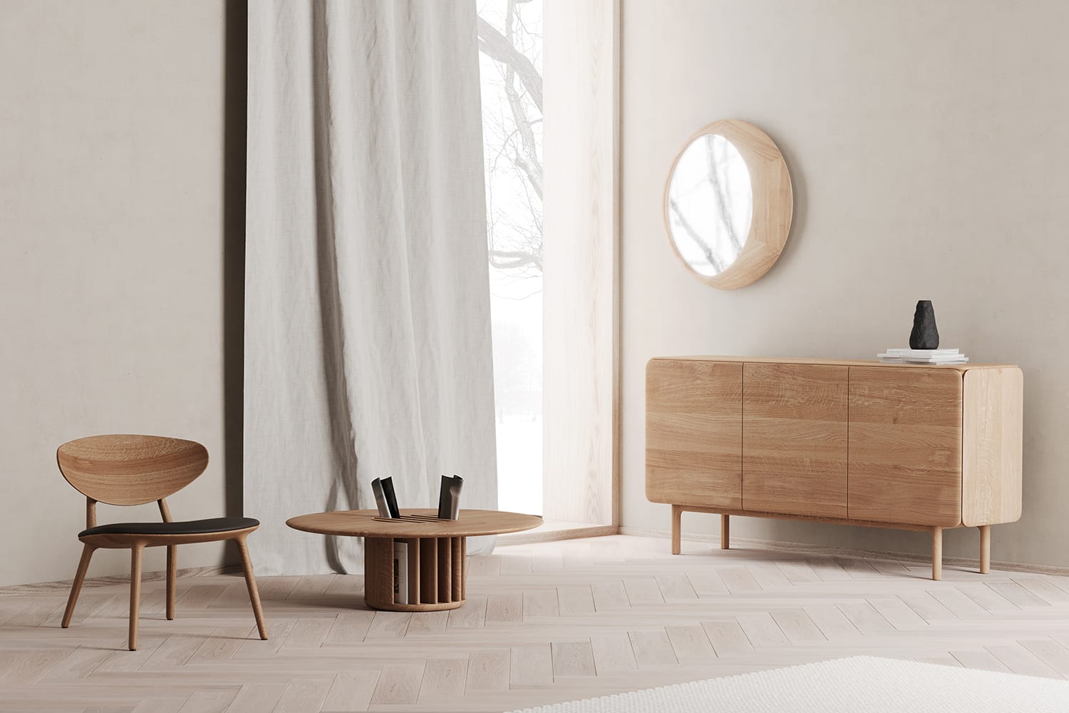 Ce buffet en bois massif est proposé dans plusieurs essences, soigneusement sélectionnées pour leur qualité et leur caractère. Disponible en différentes dimensions, il se décline du grand bahut à trois portes à la commode plus compacte à trois tiroirs.