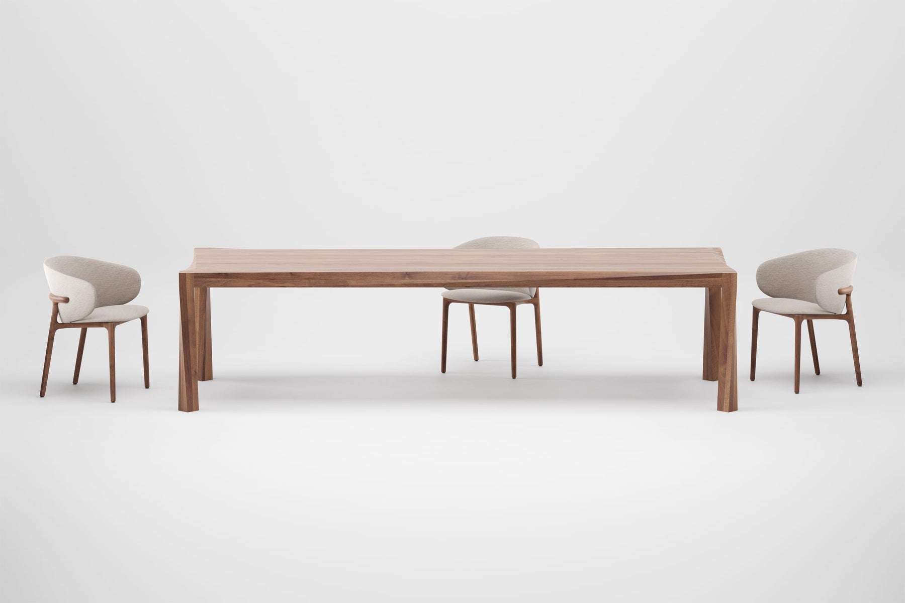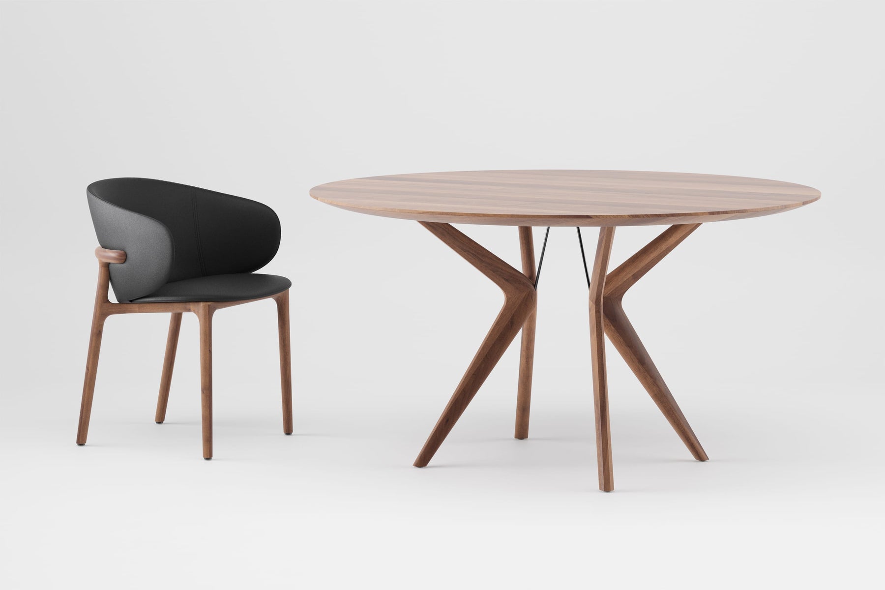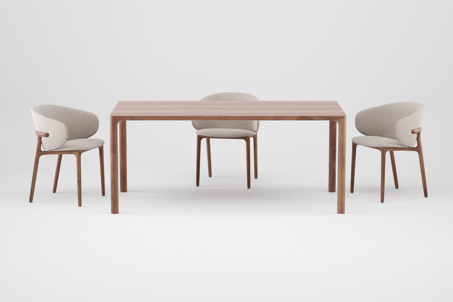 The Mela chair is available in 6 different wood species (oak, walnut, maple, elm, cherry and pear), with different natural finishes (oils and soaps) and upholstered in a range of leathers or fabrics.